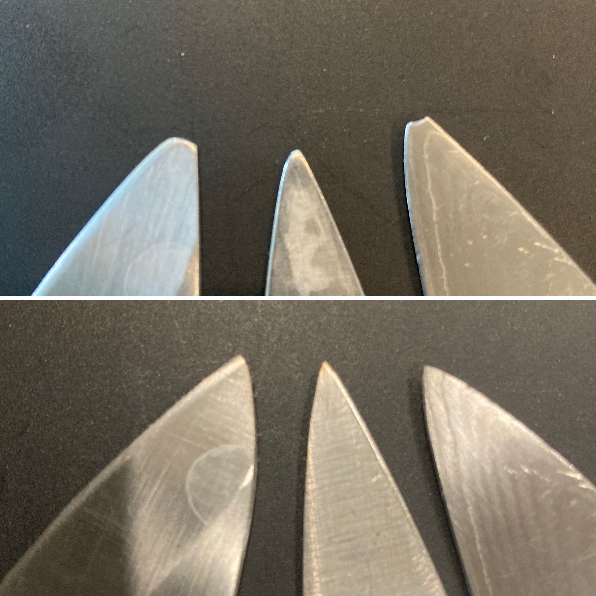 Fantastic job. Simple drop off and return. Affordable. Most of all, my knives are perfection once again! Thank you!